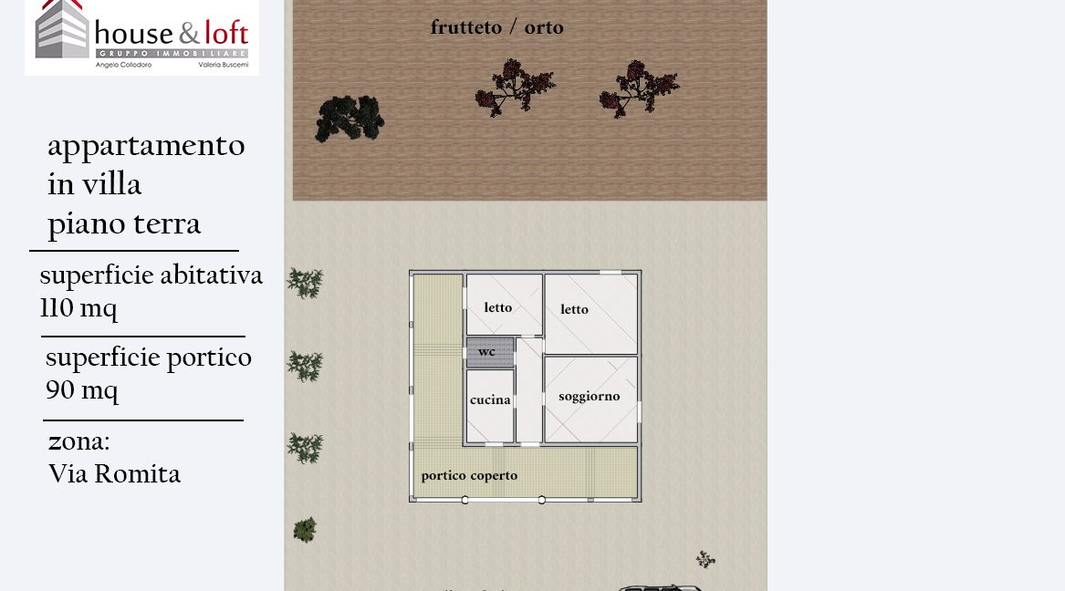 In una ricercata zona residenziale, in Via Romita a Caltanissetta, proponiamo la vendita di una porzione di villa con ingresso indipendente con un ampio piazzale abbellito da una cornice di aiuole. L’immobile posto al piano terra di circa 110 mq, è completamente da ristrutturare ed è un ottimo punto di partenza per realizzare una proprietà moderna e confortevole. Attualmente è composto da: ingresso, cucina, ampio salone, 2 vani letto oltre bagno; all’esterno l’immobile è impreziosito da un portico, di mq 90 complessivi, che si estende su due lati ed aspetta solo di essere arredato per godersi piacevoli momenti, offrendo un’ampia zona d’ombra e relax. A completamento dell’immobile, nella parte retro, troviamo un giardino di proprietà esclusiva di mq 800 con alberi di frutta ed ulivi. La soluzione perfetta per chi desidera un’abitazione con ampie possibilità di personalizzazione, vicinissima alla città ed allo stesso tempo in un contesto tranquillo. Progetto di ristrutturazione e rendering gratuito per i nostri clienti visionabile in agenzia. Prezzo trattabile.